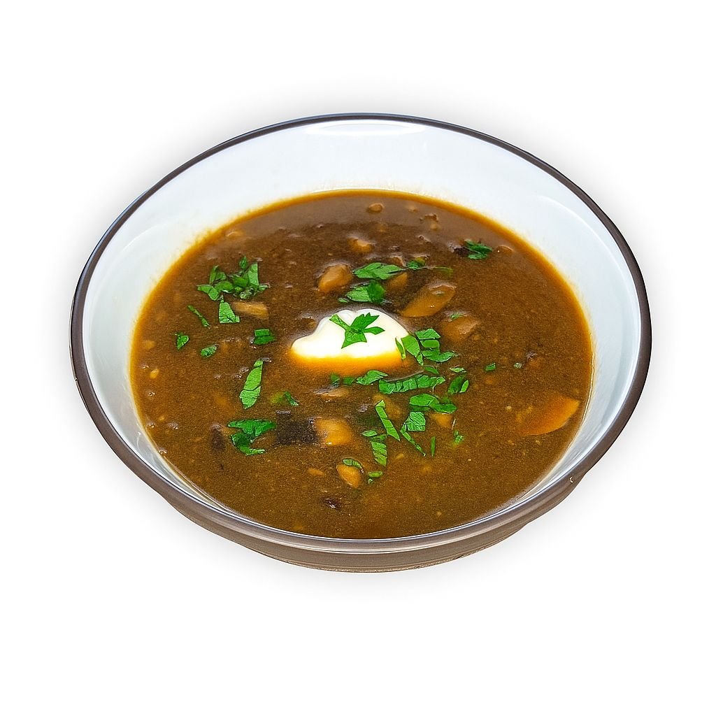 Our mushroom soup combines the creaminess of perfectly cooked barley with small chunks of cubed mushroom and potatoes. The overall taste is infused with bold flavor of wild porcini mushrooms, that also give our soup a dis=nct brown color. The flavor is further enhanced by addition of ground parsley and celery roots that bring the mushroom taste to a new level. We don’t thicken our soup with flour as it is always made with the perfect balance of broth and substance. Due to low fat content is can be consumed both cold and hot, and can be further enhanced by adding sour cream to your bowl.